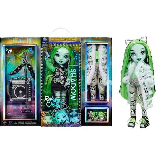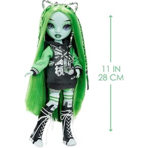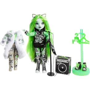 Rainbow Vision Shadow High Neon - Harley Limestone (Verde Neon) boneca fashion 2 roupas de grife, acessórios de banda de rock mix e match Todas as melhores escolas de arte apresentarão bandas para competir na mundialmente famosa batalha musical Rainbow Vision A competição está esquentando, e as garotas rockeiras da Neon Shadow estão de olho no prêmio Cada conjunto vem com uma boneca fashion, 2 roupas de grife para misturar e combinar e instrumentos de banda de rock para que todas as crianças possam participar da diversão