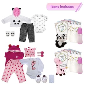 as bonecas bebê reborn gêmeas girafinha loira pandinha morena enxoval são perfeitas para realizar o sonho das meninas! produzidas com materiais de alta qualidade, essas bonecas são encantadoras e apaixonantes. Feitas 100% em vinil siliconado atóxico, as gêmeas girafinha loira pandinha morena enxoval possuem membros articulados e corpo de silicone, proporcionando uma experiência realista e cheia de detalhes encantadores. Com seus olhos castanhos, elas cativam a todos com seu charme e delicadeza. Com altura de 46cm e peso aproximado de 0,745 kg, essas bonecas são perfeitas para crianças maiores de 03 anos. Elas vêm acompanhadas de diversos itens, como um conjunto de roupa girafinha, um conjunto de roupa pandinha, dois pares de cílios, dois pares de brinco, duas chupetas, duas mamadeiras simples, dez certificados, quatro fraldas, um par de sapatinhos e duas pelúcias. A marca responsável por essas bonecas é a cegonha reborn dolls, conhecida pela sua qualidade excepcional. As gêmeas girafinha loira pandinha morena enxoval possuem certificado inmetro, garantindo a segurança e tranquilidade dos pais.