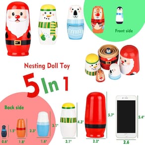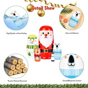 ?Brinquedos engraçados e surpreendentes?: Estas bonecas de nidificação para crianças podem ser empilhadas juntas, parecendo uma boneca grande. É como uma caixa de presente. Quando você abri-lo, você pode encontrar surpresas desconhecidas. Depois de serem desmontados, há cinco bonecos de diferentes tamanhos, ou seja, claus, um boneco de neve, um cachorro, um urso e um pinguim