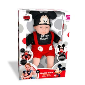 Boneco Bebê - Classic Dolls Disney - Recém Nascido - Mickey - Roma: esse lindo boneco traz a doçura do ratinho mais famoso da Disney. Além da roupa personalizada inspirada no personagem Mickey, o boneco também vem com chupeta e uma certidão de nascimento para registrar o bebê. O Boneco Classic Dolls Mickey Mouse possui membros em vinil e corpo macio preenchido com fibra sintética e algodão. As crianças vão se divertir de montão com a boneco recém-nascido inspirada na Mickey Mouse. INFORMAÇÕES: • Produto: Boneco Classic Dolls Mickey Mouse • Marca: Roma Brinquedos • Coleção: Classic Dolls Recém Nascido • Linha: Disney • Tipo: Boneco bebê com acessórios • Categoria: Bonecos e Cia • Tamanho (C x A x L): 23 x 40.5 x 13 cm • Volume (Peso): 0.580 kg • Conteúdo: Boneco, chupeta e certidão de nascimento • Recomendação: para crianças a partir de 03 anos de idade ESPECIFICAÇÕES: • Referência: 5161 • Código de Barras: 7896965251617 • Embalagem (C x A x L): 29.7 x 42 x 16.2 cm • Embalagem (Peso): 1.010 kg • Material / Composição: - Boneco: membros em vinil e corpo macio em algodão e fibra sintética - Roupinha: Algodão e Poliéster - Acessórios: Plástico • Registro: 03129/2019 • Certificado: Órgãos Autorizados - OCP´S (Organismos de Certificação de Produtos) BENEFÍCIOS DE BRINCAR: • Eleva a autoestima • Exercita a memória • Estimula o raciocínio • Exercita o imaginário • Desenvolve a criatividade • Desenvolve percepção visual • Desperta a atenção e curiosidade • Desenvolvimento neuropsicológico • Estimula habilidades motoras básicas • Incentiva a comunicação e linguagem • Desenvolve aspectos emocionais e afetivo • Estimula o reconhecimento de formas e cores AVISO: • As imagens são meramente ilustrativas • Os pesos, tamanhos e medidas são aproximados • As cores e estampas dos produtos podem ter variações • As informações são de responsabilidade do fabricante ou fornecedor