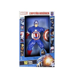 Este boneco de aproximadamente 50cm de altura é ideal para proporcionar diversão em diversas brincadeiras, sendo um item indispensável para os pequenos fãs do Capitão América. Com 10 frases icônicas do personagem, ele vai encantar e estimular a imaginação das crianças. Além disso, o produto é produzido pela Mimo, garantindo qualidade e durabilidade.