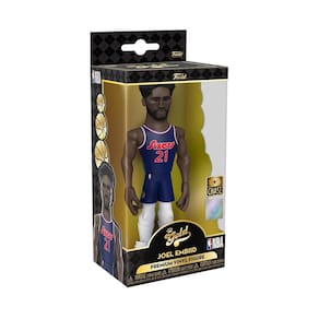 - Faça um mergulho na sua coleção da National Basketball Association com o novo boneco de vinil premium Joel Embiid da Funko Gold. Este colecionável de 12,7 cm de altura de Joel Embiid o veste com seu uniforme vermelho do Philadelphia 76ers em casa.
