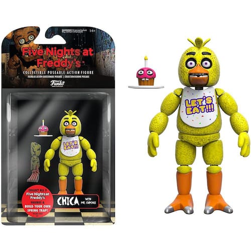""Produto internacional. Os impostos estão incluídos. O cliente não precisa pagar impostos; caso o faça, não será reembolsado.""Do jogo de sucesso Five Nights at Freddy's, Chica, como uma figura de ação de vinil articulada de 5" da Funko! A figura tem 5 polegadas e vem em um cartão com uma caixa de exibição de janela. Confira as outras Cinco Noites nas figuras de Freddy da Funko! Colete todas as cinco noites no Freddy's 5" figuras de ação articuladas para criar Spring Trap - a primeira construção-a-figura de Funko!