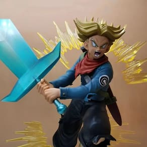Material: PVC Cor: multicolorido Tamanho do pacote: 26 x 20 x 12 cm Peso da embalagem: 0,431 kg Lista de embalagem: 1 x boneco Este boneco de ação Dragon Ball Z Trunks mede 24 cm e apresenta a forma icônica de Super Saiyan, completa com efeito de energia e espada, capturando a intensidade de um dos personagens mais poderosos de DBZ. ', 'Feita de PVC durável, a figura mostra detalhes incríveis, incluindo a aura de energia fluida e a expressão determinada de Trunks, tornando-a um item de coleção essencial para qualquer fã de Dragon Ball Z. ', 'A pose dinâmica da figura e a atenção aos detalhes nas roupas e na espada de Trunks conferem a ela uma presença realista, ideal para exibição em uma coleção ou como peça central marcante em sua casa ou escritório. ', “Trunks é retratado em sua transformação exclusiva de Super Saiyajin, com efeitos de energia vibrantes que aprimoram a aparência dramática da figura, adicionando emoção a qualquer coleção de Dragon Ball Z. “, “Este boneco de alta qualidade de Trunks é um presente perfeito para entusiastas de Dragon Ball Z, oferecendo uma mistura de ação, estilo e habilidade para aqueles que admiram o caráter heróico de Trunks.