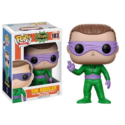 - Dos heróis da DC, Charada (os estilos podem variar), como um boneco Pop de vinil de Funko!