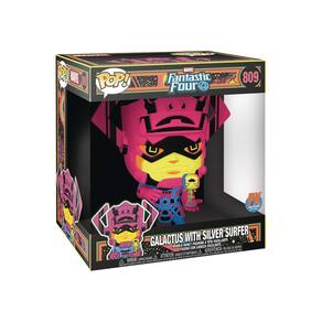 Boneco Funko POP Jumbo Marvel Galactus com Surfer PX BLK LT 10IN Standard - Tamanho: Padrão - NOTA: aleatoriamente, o cliente pode receber a variante CHASE em vez do POP normal - 2 bonecos de vinil - O boneco se sustenta sozinho - Mede aproximadamente 12" de altura, um pequeno mede aproximadamente 2" de altura