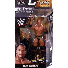 Mattel Boneco WWE The Rock WrestleMania Elite Collection com acessório e peças "Mean" Gene Okerlund Build-A-Figure, 15 cm - O boneco WWE tem aproximadamente 15 cm de altura - Tecnologia TrueFX altamente detalhada - 25 pontos de articulação - Inclui mãos e acessórios intercambiáveis - Completo para construir "Mean" Gene Okerlund BAF