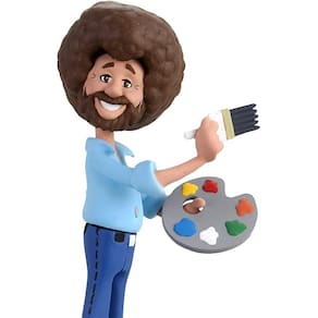 NECA Boneco clássico Bob Ross Toony de 15 cm - Uma abordagem divertida dos personagens amados do cinema e da televisão - Mede aproximadamente 15 cm de altura - Inclui palete de pintura - Embalagem com cartão blister - Recorte de fundo bônus