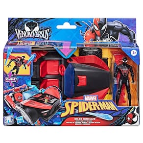 Homem-Aranha Marvel Venom Versus Epic World of Action Miles Morales Remix Blast Racer 10 cm (10 cm) boneco e carro de brinquedo, acessórios, brinquedos de super-herói, 4+
