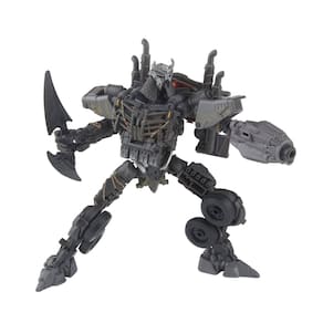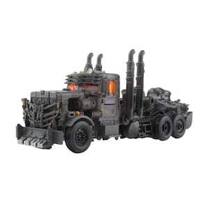 Transformers Toys Studio Series Leader Class 101 Scourge Toy, 21,6 cm, boneco de ação para meninos e meninas a partir de 8 anos - TRANSFORMERS Classe líder da série de estúdio: estes bonecos colecionáveis de 21,6 cm inspirados em cenas icônicas de filmes e projetados com especificações e detalhes para refletir o universo do filme Transformers - Escala de 8,5 polegadas: o boneco Scourge da série Transformers Studio 101 para meninos e meninas é altamente articulado para facilitar e apresenta detalhes inspirados no filme - 2 modos icônicos: este brinquedo Transformers para meninos e meninas de 8 anos apresenta uma conversão clássica entre os modos robô e caminhão em 31 passos - Acessórios incríveis: o boneco Transformers vem com um acessório de lâmina e acessórios destacáveis de mão e garra que se prendem à figura do Flagelo em ambos os modos - Fundo removível: o pano de fundo removível exibe a figura do flagelo na cena de Ataque ao Museu. Os fãs podem usar o pano de fundo e posar suas figuras na cena com seu próprio estilo