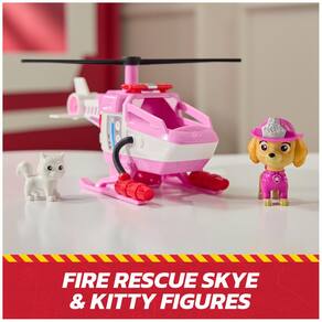 Paw Patrol Fire Rescue: Skye Rescue Fire Chopper com figura de ação, amigo gatinho e helicóptero de brinquedo, brinquedos infantis para meninos e meninas a partir de 3 anos