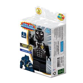 Personagem: defensor preto. Contém 08 oito peças. Encaixa nos blocos ggb. Tamanho real. Composição: plástico. Tamanho do herói montado: 12 x 6,5 x 2,5cm.