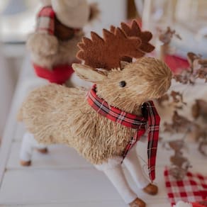 Boneco De Natal Decorativo Rústico Em Palha 26cm Rena -