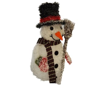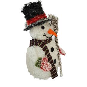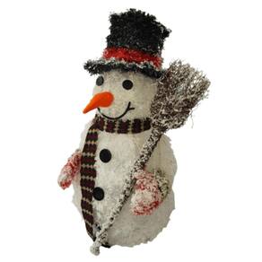 Boneco de neve com estrutura de arame e revestido com fibras de Acrílico branca simulando como se estivesse nevado. Uma ótima opção para sobrepor um móvel, colocar junto a árvore de natal, naquele cantinho especial ou onde seu bom gosto mandar. Perfeito para seu ambiente e alegria das crianças que ficarão deslumbradas. Ligando, (3 pilhas AA) a iluminação se acende por toda a peça. Os detalhes como o cachecol de tricô colorido, o gorro de fibras sintéticas coloridas, o braço segurando a pá para remoção de neve, os botões em acrílico, são um charme a parte que deixa ele ainda mais fofo e charmoso. O material em acrílico demonstra toda a riqueza de detalhes assim como excelente qualidade no acabamento, perfeito!
