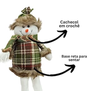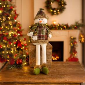 Conteúdo: 1 boneco de neve decorativo sentado perna mole