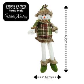 Boneco de Neve Decorativo Sentado em Pelúcia – Perna Mole Xadrez Verde e Branco 40cm
