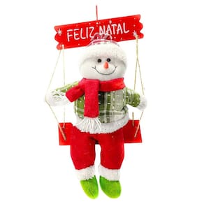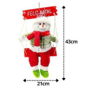 -01 Unidade Boneco de Neve Gangorra Madeira Placa Feliz Natal Pelúcia Tricô Vermelho 40cm