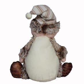 - possui uma sacola de neve apenas a representação da neve . - narizinho de cenoura, igualmente à bonecos de neve. - tem uma touca e um cachecol que deixam ele mais chamativo, muito lindo. nenhuma - - das duas são removiveis . - ele tem um peso extra por dentro para ele ficar sentadinho.