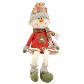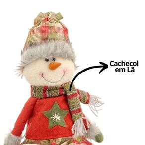 -01 Unidade Boneco de Neve Decorativo Sentado – 56cm, Pelúcia Prime com Traje Xadrez Vermelho e Verde e Cachecol