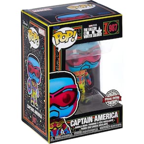 - POP MARVEL: Do Flacon e do Soldado Invernal, é o Capitão América (Luz Negra) como um boneco Pop de vinil estilizado de Funko!