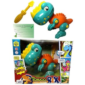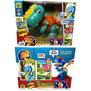 Dinossauro Tchuco Rex da Samba Toys é um dinossauro muito divertido! Ele é todo desmontável, articulado. Com essas atividades ele ajuda na coordenação motora, na percepção, cores e formas da criança. Acompanha uma chave de fenda para montá-lo e desmontá-lo. Monta e desmonta. Coloque o braço ou a perna no dinossauro. Coloque o parafuso no orifício para fixá-los.