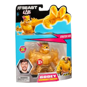 Apresentamos o novo MrBeast Lab - Heróis Esticáveis. A icônica pantera de MrBeast agora se transforma em um herói elástico e macio, nunca antes visto. Com aproximadamente 11 centímetros, essas figuras podem esticar até três vezes o seu tamanho, prontas para um ataque poderoso. São três heróis pantera elásticos únicos para colecionar, cada um com um recheio pegajoso diferente: a Pantera Icônica, a Pantera Hiper Carregada e a Pantera Lendária. Comece sua coleção e aventure-se com o novo MrBeast Lab - Heróis Esticáveis da Heroes of Goo Jit Zu. Adquira já e descubra a diversão elástica e surpreendente!
