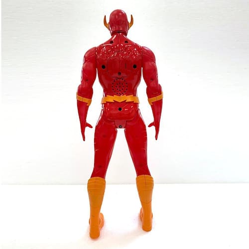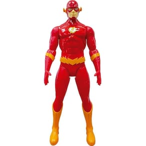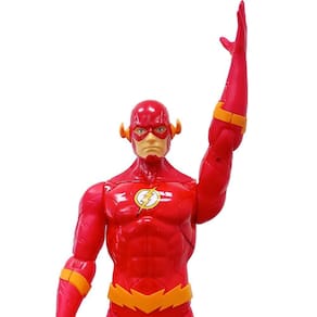 Boneco do Flash com 14 polegadas e 4 frases que são acionadas com o movimento do braço. Possui pontos de articulação.(utiliza 3 bat LR-44-inclusas para demonstração)