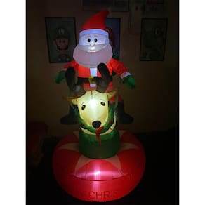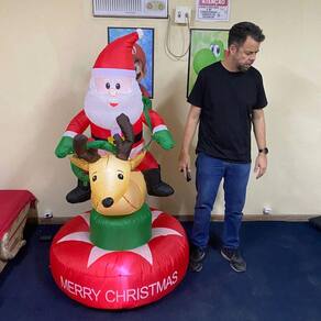 Crie momentos inesquecíveis com a presença mágica deste Papai Noel inflável na rena com LED. É impossível não sorrir ao vê-lo iluminando sua decoração e encantando adultos e crianças!