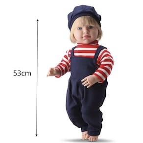 Boneco Loui Bambola – Francês 53cm O Loui é um charmoso boneco da marca Bambola, desenvolvido com riqueza de detalhes para encantar crianças e colecionadores. Inspirado no estilo francês, ele mede 53cm e possui corpo de pano macio, ideal para abraçar e brincar com conforto. Seu visual traz a tradicional elegância parisiense: blusa listrada em vermelho e branco, macacão azul marinho e boina combinando, deixando o Loui ainda mais autêntico e sofisticado. Informações: - Ref.: 643 - Marca: Bambola - Modelo: Loui - Material: Vinil, Tecidos e Polipropileno - Material Corpo: Pano - Tamanho ideal para brincadeiras de cuidado - Código de barras (EAN): 7899871706431 - Altura Aproximada: 53 cm - Certificação: 7789-2023-BRI-1M - Recomendado para crianças a partir de 3 anos Conteúdo da Embalagem: - 1 Boneca Um boneco único que une beleza, tradição e carinho em cada detalhe!
