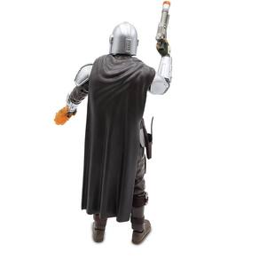 Figura de ação de The Mandalorian Pressione o botão no peito para ouvir frases de personagens reais. Pressione o botão no ombro esquerdo para ativar o lança-chamas iluminado. Pressione o botão no ombro direito para ativar as luzes e sons do blaster. 12 pontos de articulação. Idades 3+ Requer 2 pilhas AAA, incluídas Plástico Boneco mede: 38 cm