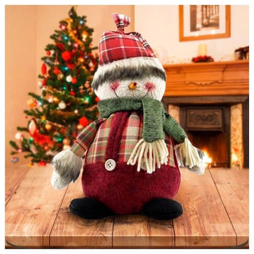 Boneco Natal Decorativo Boneco De Neve Tecido Xadrez 22cm