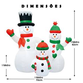 Facilidade de Uso: Esta família de bonecos de neves são infláveis, é super prática! Basta ligá-la à energia elétrica e, em questão de segundos, eles estarão pronta para brilhar.