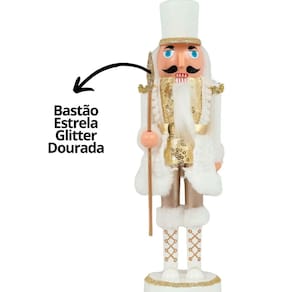 -01 unidade Quebra Nozes Decor Branco e Dourado Luxo 28cm com Bastão Estrela Dourada - Magizi