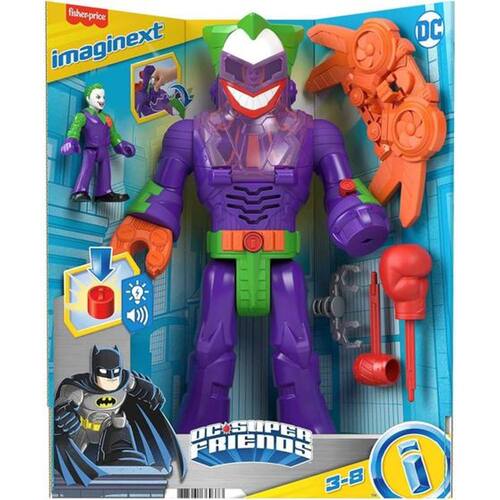 Imaginext DC Super Friends Coringa Insider e LaffBot é um conjunto com figuras robóticas que permite que as crianças elevem as suas histórias de faz-de-conta com super vilões a outro nível As crianças podem colocar a figura articulada do Coringa no interior da cabine de comando do LaffBot e enviar a dupla de vilões para arrumar muita confusão para o Batman