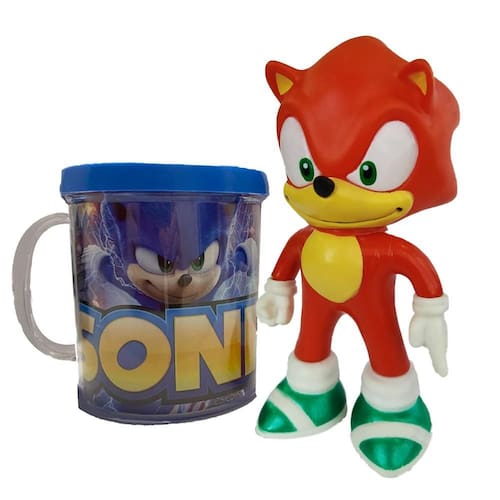 Boneco Sonic Vermelho Collection com Caneca Personalizada Se você nasceu jogando esse clássico ou em algum momento da vida já tinha ouvido nesse personagem, esse produto é para você, e agora ele vem com uma caneca super top para sua bebida