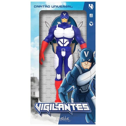 Boneco capitão universal vigilantes azul - mielle Um herói preparado para a ação, sempre disposto a lutar pelo bem-estar de todas as pessoas do planeta terra. Vigilante capitão universal faz parte de um grupo de heróis que tem como missão proteger a vida das pessoas independente da ameaça que está por vir. Sendo assim, não importa o que aconteça, eles darão a sua vida para salvar o planeta. Altura: 55,8cm Largura: 10cm Comprimento: 30cm Peso: 1.100 kg - alta qualidade. - não recomendado para menores de 3 anos. Inmetro: 000800/2019