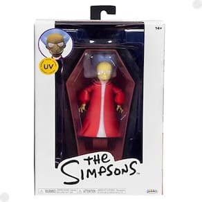 Um dos personagens mais iconicos do mundo dos Simpsons saiu de Springfield para deixar a sua vida mais divertida e engraçada Brinque com o malvado Mr Burns Dracula, Mr Burns Dracula é uma versão do pesonagem que aparece no especial de halloween a casa da arvore do horror , fazendo refencia ao vampiro mais famoso da cultura pop, o Dracula. Brinque com uma das vesoes mais unicas do senhor Burns e tenha uma diversão sem fim. Figura com pontos de articulação