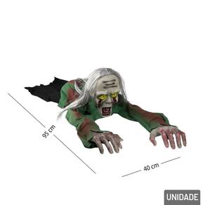 Boneco Zumbi Rastejante com Movimentos LUZ e O Boneco Zumbi Rastejante com Movimentos, Luz e Som é assustador e divertido, ideal para brincadeiras temáticas ou decoração de Halloween. Ele rasteja sozinho, emitindo sons e luzes que tornam a experiência mais realista.\nCom design detalhado e efeitos especiais, é perfeito para animar festas e surpreender com muito terror e diversão. Um brinquedo criativo para quem adora zumbis e sustos.\nUtiliza: 3 pilha AA (não inclusa).\nEspecfiicações:\nMarca : CIM\nTipo de material : Plástico, Componentes Eletrônicos\nCores ou Estampa : Colorido\nDimensões do Produto : 22 X 95 X 40 CM\nDimensões da Embalagem : 22 X 95 X 40 CM\nPeso Bruto (Gramas) : 0.830