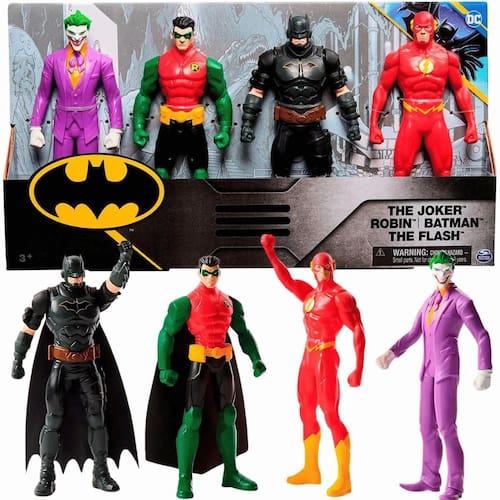 - Contém: 4 Bonecos 1 Bamtam, 1 Flash, 1 Robin e 1 Coringa