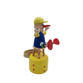 Informações do Produto: Os bonecos articulados em madeira são uma ótima opção para presentear os amigos. Para acioná-lo basta apertar o botão que ele desmonta automaticamente. Produto com cores .