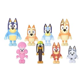 - Recrie alguns dos momentos mais memoráveis do show com este incrível pacote de 8 bonecos e traga a diversão e imaginação do Bluey para casa