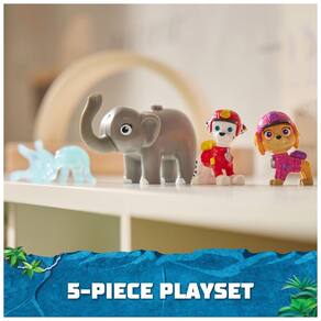 Crie aventuras emocionantes com as figuras pré escolares da PAW Patrol Jungle Pups, incluindo Marshall, Skye e um elefante amigo Com mais de 5 cm de altura, essas figuras são fiéis ao show, vestidas com seus uniformes e capacetes Jungle Pups. Para resgates empolgantes, prenda o projétil de água na tromba do elefante, puxe a para trás e pressione o botão para lançar. Deixe a imaginação fluir e recrie cenas favoritas da série ou crie novas missões de resgate. Para ainda mais diversão, colete todos os brinquedos PAW Patrol Jungle Pups e The Mighty Movie, incluindo o QG do porta aviões e conjuntos de brinquedos especiais como Mighty Bonecos, Aqua Pups e Big Truck Pups vendidos separadamente. Estes brinquedos pré escolares são ótimos para desenvolver habilidades motoras e explorar a imaginação por meio de brincadeiras de faz de conta. O conjunto inclui 1 figura Marshall, 1 figura Skye, 1 figura elefante e 2 projéteis.