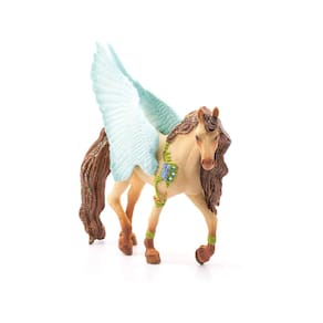 - Parte de um mundo de brincadeiras em crescimento. O garanhão Pegasus decorado faz parte da coleção Bayala de estatuetas e conjuntos de brinquedos da Schleich. Ótimo para presentear, esta estatueta pode ficar sozinha ou caber em um mundo maior e modular.