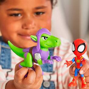 Este conjunto de bonecos de ação inclui um boneco articulado do Spidey com aproximadamente 10 cm com seu traje Dino-Web, e também, uma figura articulada do dino Goblin Raptor para incentivar grandes aventuras.