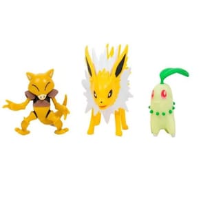 Para ser um bom treinador é necessário conhecer bem estes dois Pokemons! Ele são uns dos mais famosos e queridos da série Este pack inclui 3 figuras de batalha, sendo elas do Pokemon Abra Chikorita e Jolteon