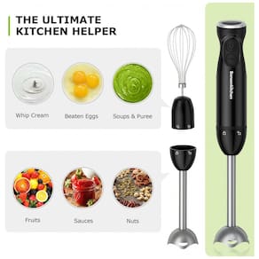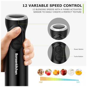 Potência e velocidade fortes potência de 400 watts, velocidade variável de 12 e função turbo. O liquidificador de imersão inteligente pode ser perfeito para seus smoothies de gelo, purê, molho, molho, maionese, sopa etc.