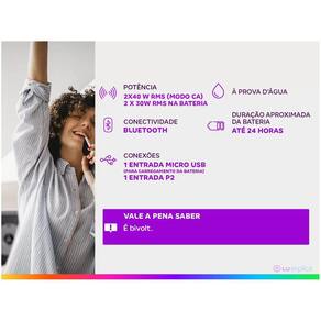 O agito dos encontros com a família ou amigos é sempre algo muito especial não é? E nesse momento de descontração, a boa música é indispensável para a diversão ser completa. Mas para que haja boa música, precisamos contar com uma caixa de som adequada para cada tipo de ocasião. Por isso, vale a pena conferir a Caixa de Som BOOMBOX 2 da JBL. Trata-se de uma potente caixa portátil, ideal para reprodução de músicas via Bluetooth ou para agitar a festa na piscina, já que é a prova d'água. Além dos graves monstruosos, design arrojado e incrível tempo de reprodução de até 24 horas, você pode conectar outros alto-falantes compatíveis usando o recurso JBL PartyBoost para animar ainda mais a festa. Possui ainda uma entrada micro USB para carregamento de dispositivos e uma potência incrível de até 80W RMS (2x40 W RMS (modo CA) - 2 x 30W RMS na bateria) sendo composta por 2 woofers de 4" e 2 tweeters de 0,75". Não perca a oportunidade de agitar a pool party com essa incrível caixa de som!Caixa de som portátil, com classificação IPX7 à prova d’água e Recarrega de AparelhosO JBL Boombox 2 vem com graves monstruosos, design arrojado e incrível tempo de reprodução de 24 horas. À prova d´água e portátil, o poderoso alto-falante produz um som potente o dia todo e a noite toda. Além disso, você pode conectar outros alto-falantes compatíveis com o JBL PartyBoost para animar a festa. O JBL Boombox 2 mantém seus amigos dançando e seu carregador powerbank mantém seus dispositivos carregados. Com isso você pode curtir do anoitecer até o amanhecer e continuar animado!CaracterísticasCompatibilidadeDispositivos com BluetoothConexõesBluetoothUSB (carregamento de dispositovos móveis)