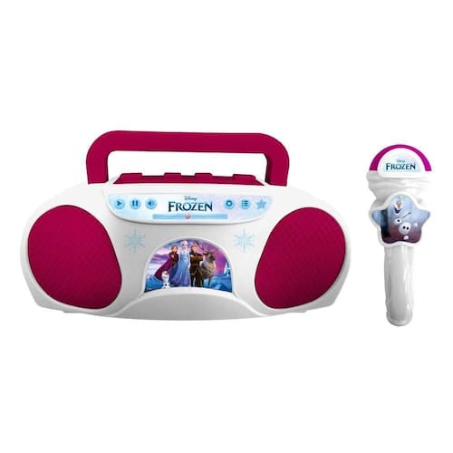 Apresentamos a incrível Boombox Karaoke Frozen! Com este aparelho de karaokê, as crianças podem se divertir e soltar a voz com suas músicas favoritas de Frozen. Equipado com uma função amplificadora, o Boombox Karaoke permite que você conecte seu dispositivo de som, como um smartphone ou tablet, e reproduza suas músicas preferidas. Assim, as crianças podem cantar junto com suas princesas favoritas e sentir-se parte do mágico universo de Frozen. Deixe as crianças soltarem a imaginação, cantarem suas músicas favoritas e se divertirem com o Boombox Karaoke Frozen. É uma ótima maneira de estimular a criatividade, a expressão vocal e a paixão pela música. Divirta-se e cante junto com suas princesas de Frozen!