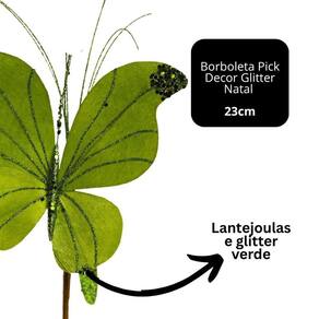 Borboleta Pick Natalina Decorada com Glitter Verde 23cm x 15cm