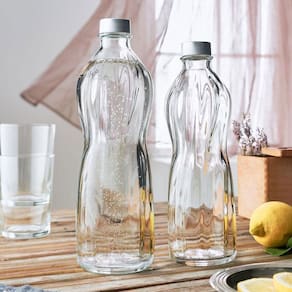 Bormioli Rocco Aqua Garrafa 28x9x9cm 1l Vidro Transp A garrafa da linha Aqua pertence à marca Bormioli Rocco, uma renomada fabricante italiana de vidro. Ela possui um lindo design com formas fluídas que lembram o movimento da água. Tem acabamento acetinado, tampa de rosca em alumínio, fechamento hermético que a torna à prova de vazamento, fácil de abrir e fechar. Adequada para água com gás.
